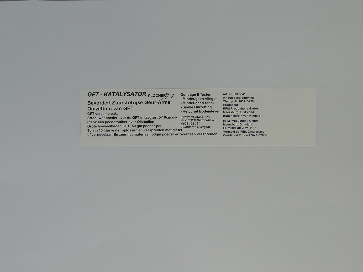 Goedgekeurd voor gebruik biologisch boeren in Zwitserland volgens regelgeving van de FiBL. Staat vermeld op de FiBL lijst.